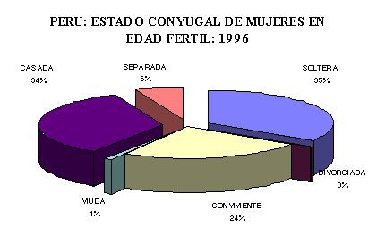 El 58% de las mujeres en edad fértil, viven en estado de unión conyugal: formalmente casadas el 34% y en situación de convivencia el 24%. Al inicio de la vida fértil entre los 15 y 19 años, 9 de cada 10 mujeres son solteras, pero al concluir los 24 años, casi la mitad (48%) ya vive en unión conyugal. Después de los 40 años, menos del 6% de las mujeres permanece soltera. Entre los 15 y 49 años de edad, una tercera parte (34%) del total de mujeres en edad fértil son solteras.