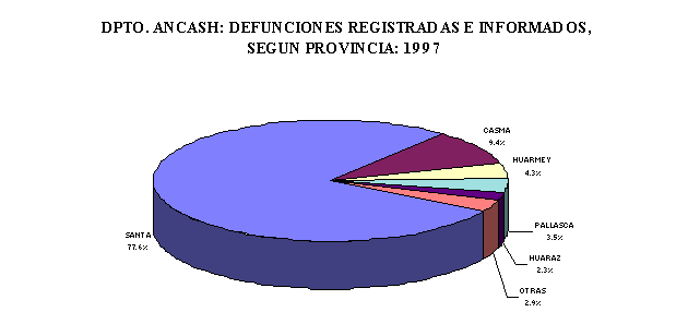 Las provincias que registraron mayor número de defunciones fueron: Santa con 1,302 (77,6%), Casma 157 (9,3%) y Huaraz con 39 (2,3%).