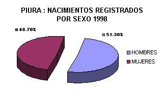 2.5 ESTADISTICAS VITALES. 2.5.1- NACIMIENTOS. En 1998, las oficinas de Registro Civil del Departamento, han registrado e informado al INEI, 30,121 nacimientos de los cuales el 51.3% son hombres y el 48.7% son mujeres.